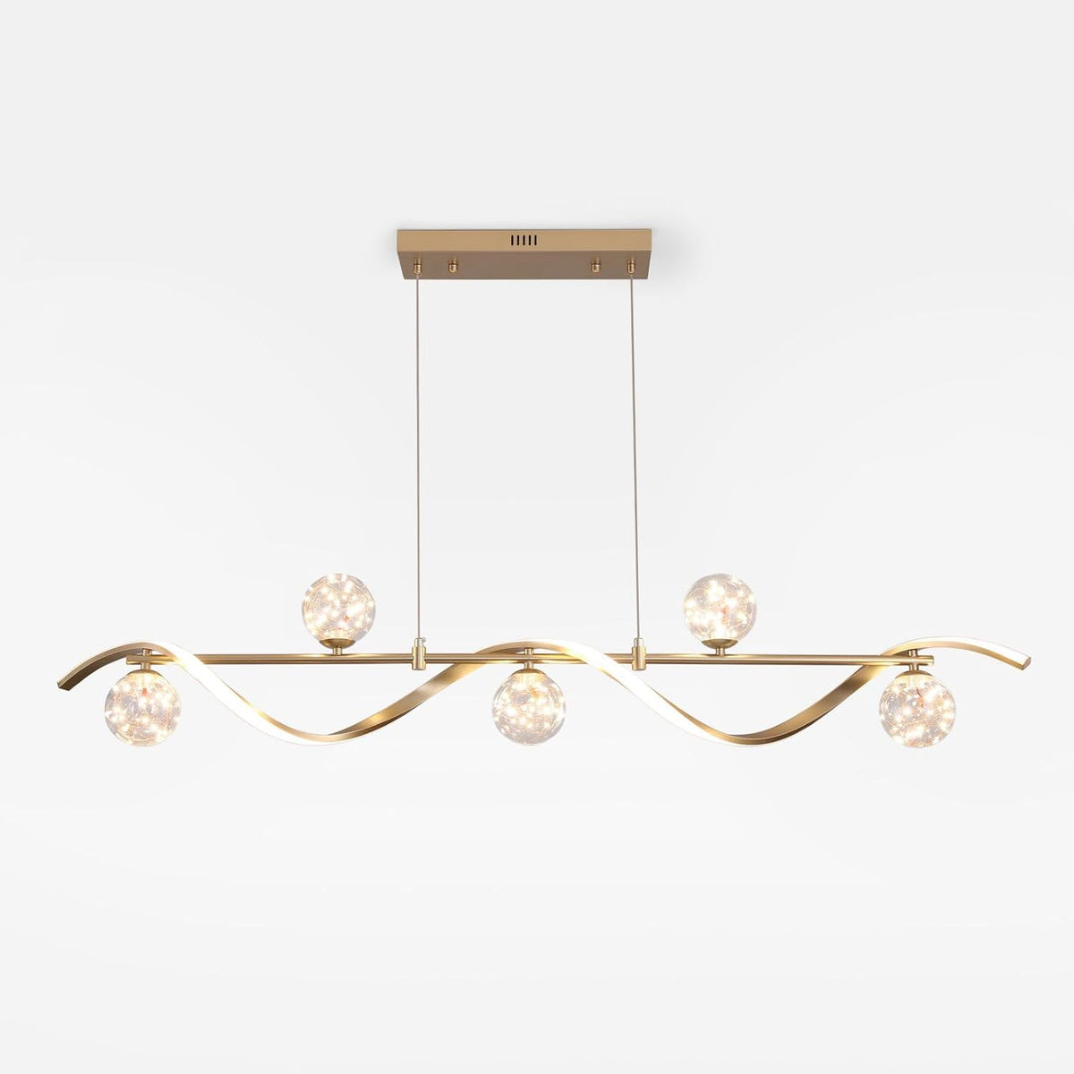 • [Stylish Gold Finish with Glass Globe Shades] - Designed with a wave-inspired gold metal body and 5 elegant clear glass globe shades, Homary dining room chandelier adds a sophisticated focal point to any room. Ideal as a kitchen island light fixture or over-table dining light