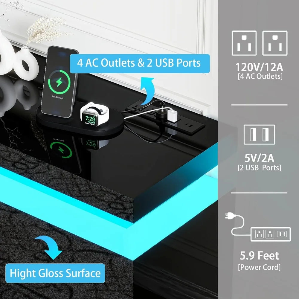 New Fireplace TV Stand for 90 Inch Tvs, Modern with LED Lights