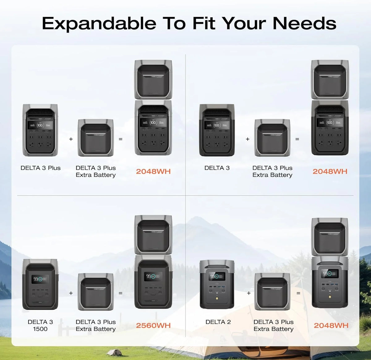 • Flexible Expansion up to 5kWh. The DELTA 3 Series seamlessly integrates with EcoFlow's ecosystem, enabling the addition of DELTA 3, DELTA Pro 3, or DELTA 2 Max battery packs. Expand your power potential up to a robust 5kWh.