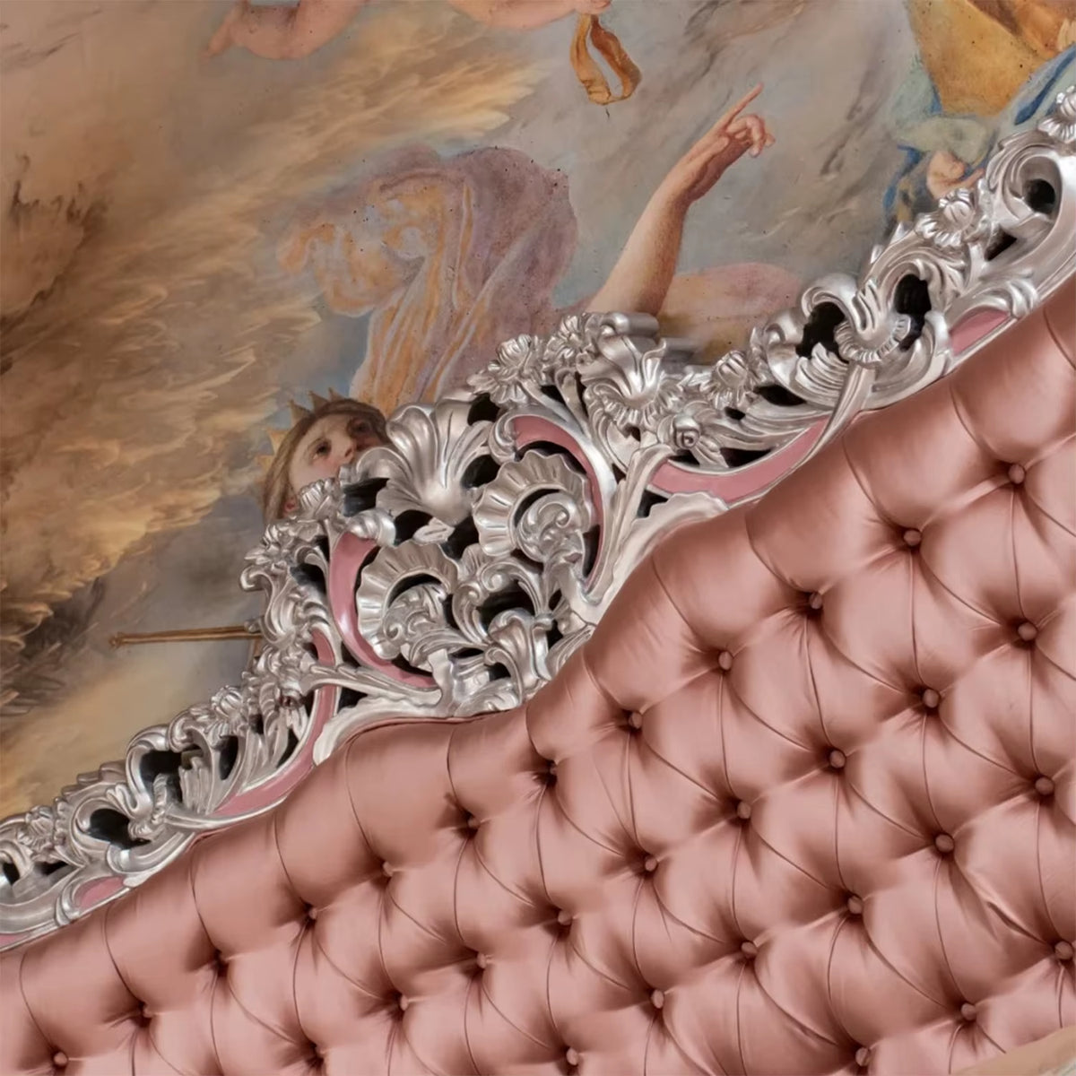 French Classic Hand Carved Silver Wood Bedroom Furniture Bed